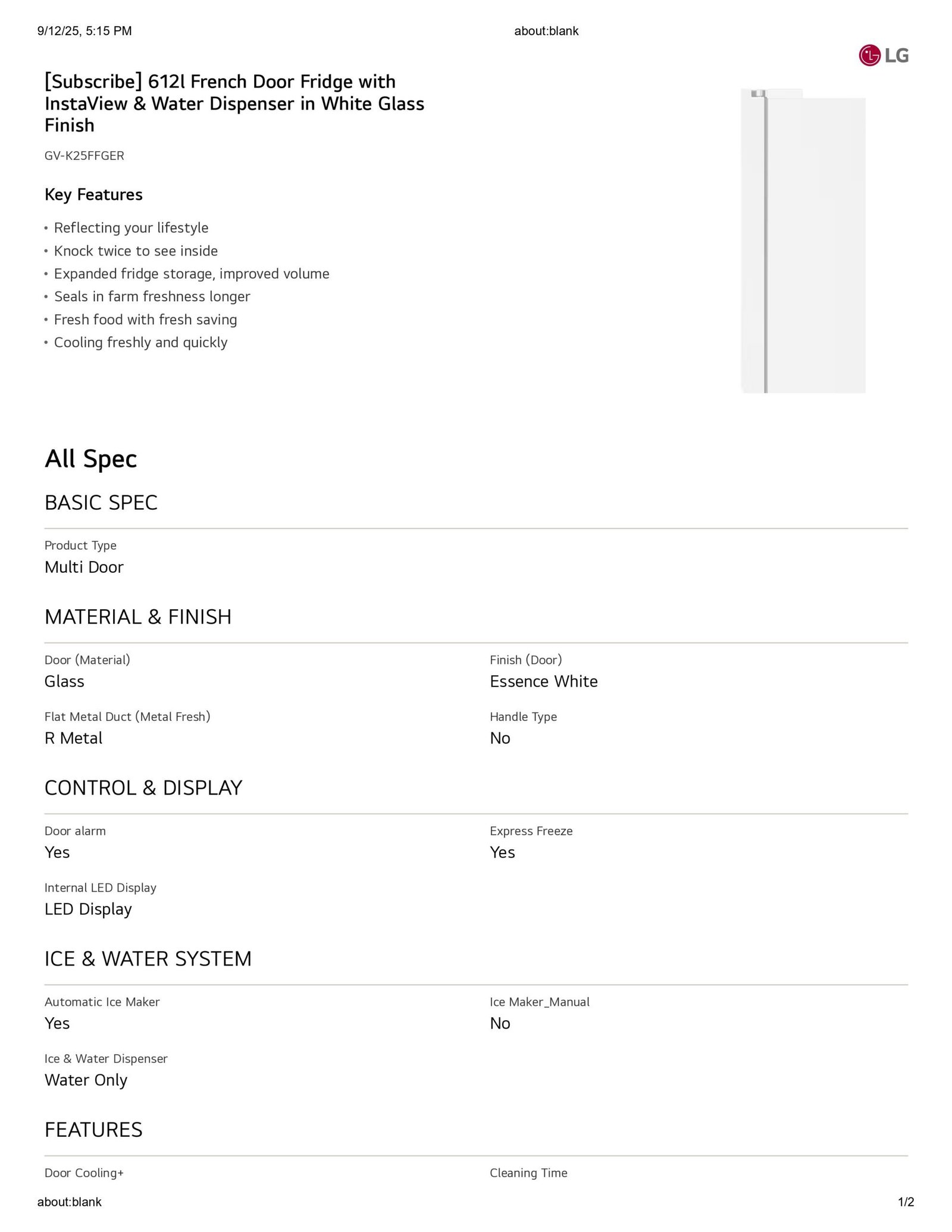 Keep food fresh for longer with spacious storage and reliable cooling — the LG GV-K25FFGER makes it simple.