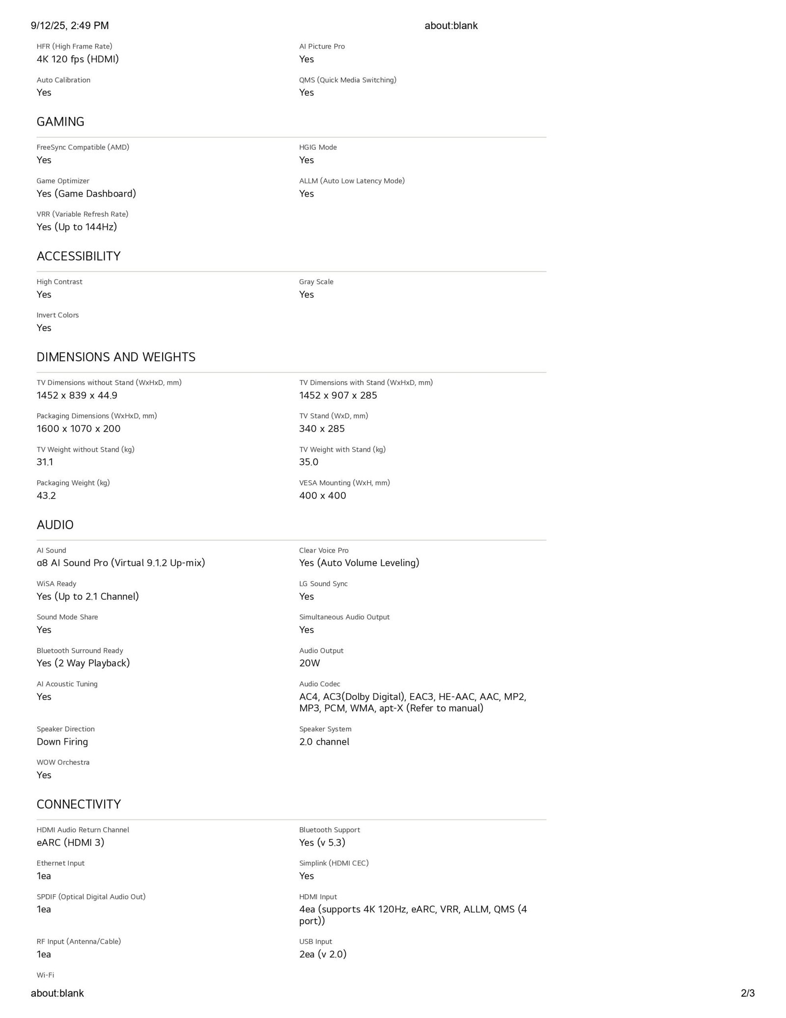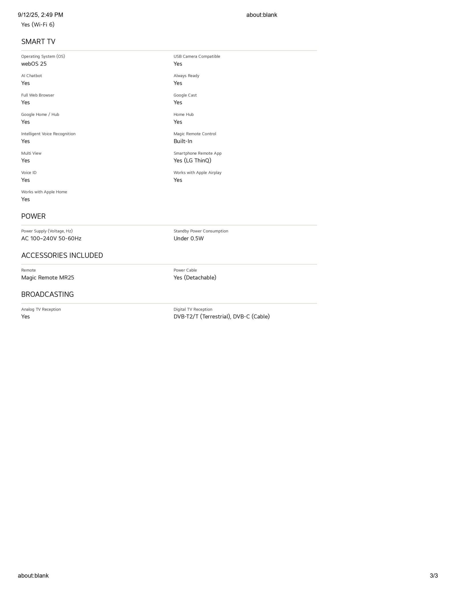 Dive into an incredibly rich color palette and ultra-sharp details on a massive screen, powered by the next-generation Alpha 8 AI Processor Gen2. Navigate effortlessly with the new AI Magic Remote, and enjoy guaranteed upgrades for four years with the webOS Re:New Program, ensuring your LG AI TV stays cutting-edge.