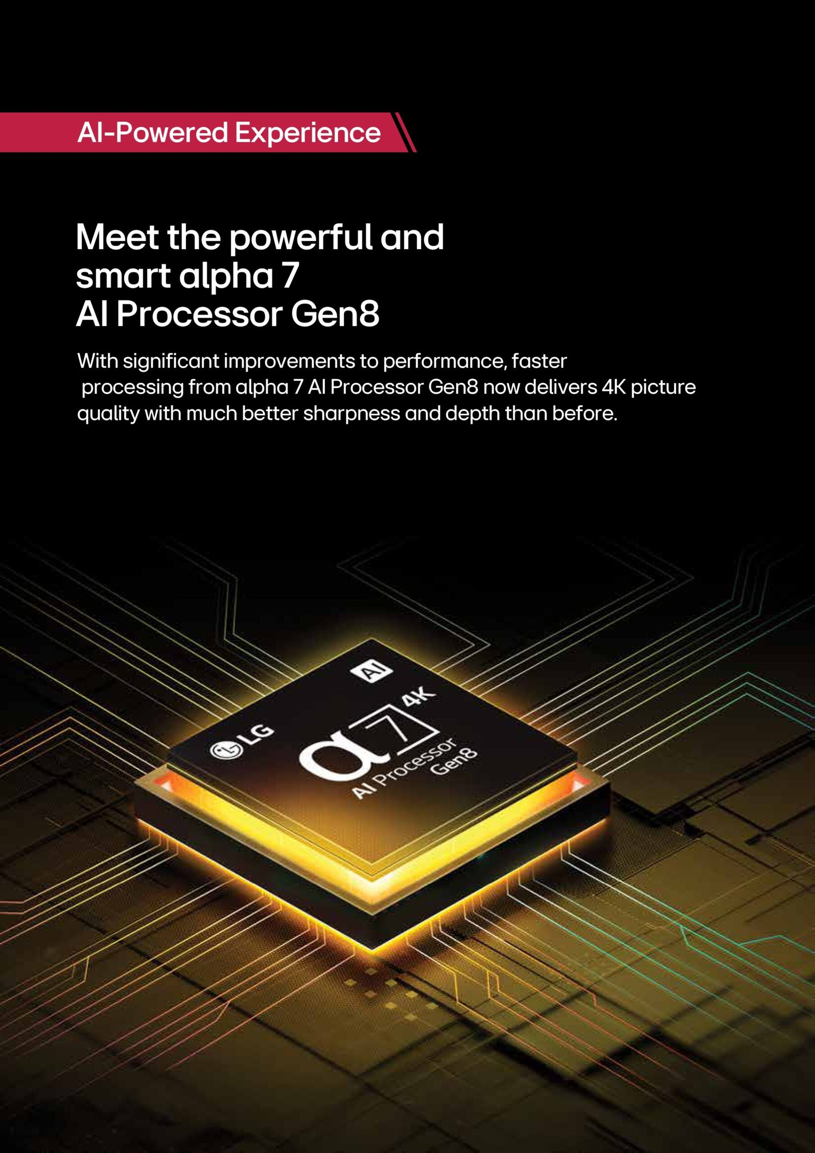 LG’s powerful processor boosts the resolution to the original quality. Enjoy 4K Super Upscaling enhanced resolution, brightness, and clarity.