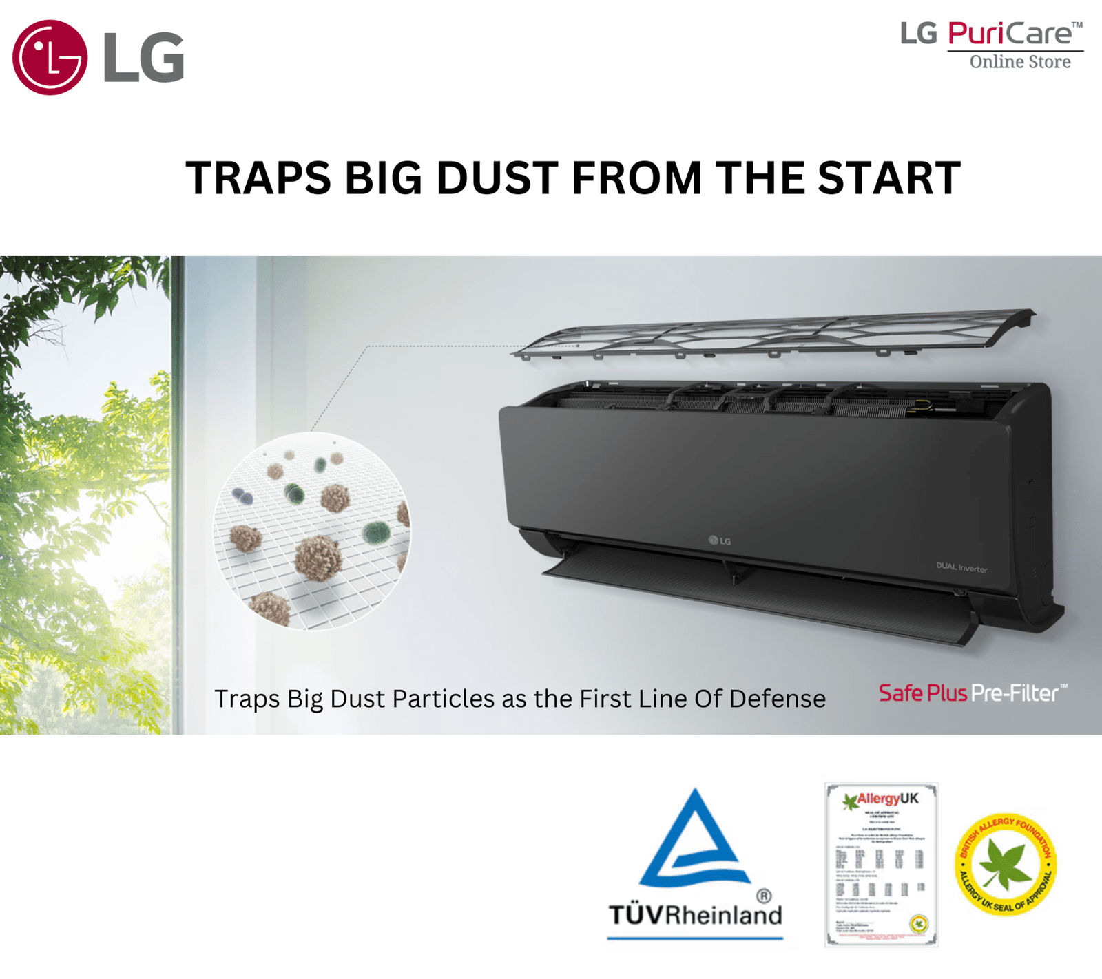 *Approved by BAF- BAF has approved that the filter is coated to remove harmful substances – such as house dust mite, fungi, and mold floating in the air – that can cause allergies.