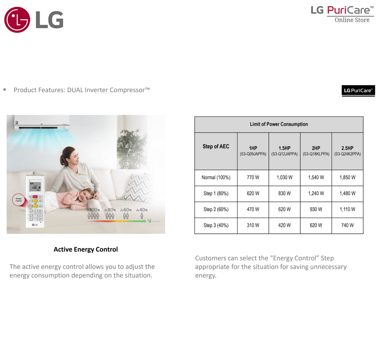 - Low Energy Consumption: Yes (Smart Inverter Compressor)