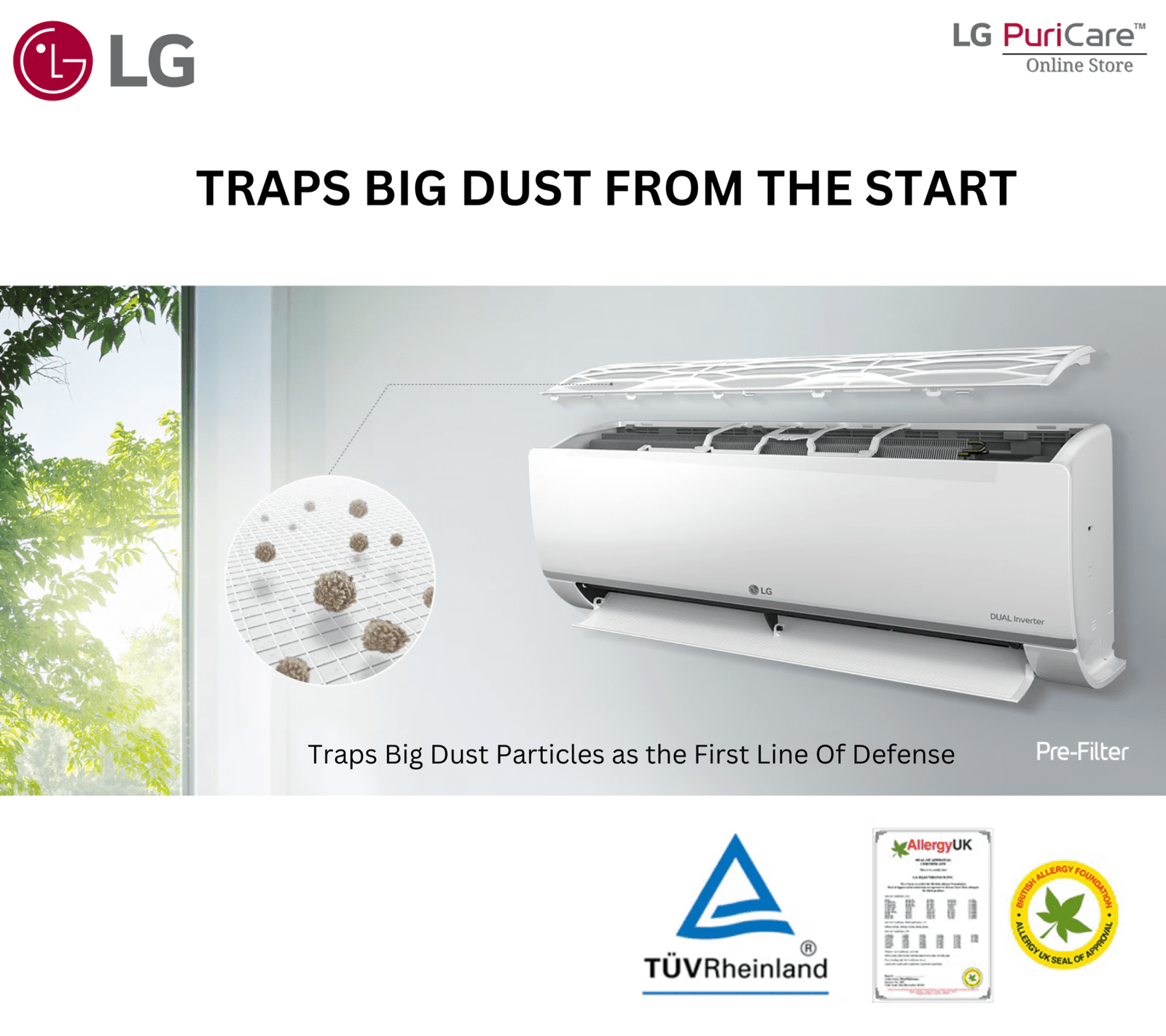 *Approved by BAF- BAF has approved that the filter is coated to remove harmful substances – such as house dust mite, fungi, and mold floating in the air – that can cause allergies.