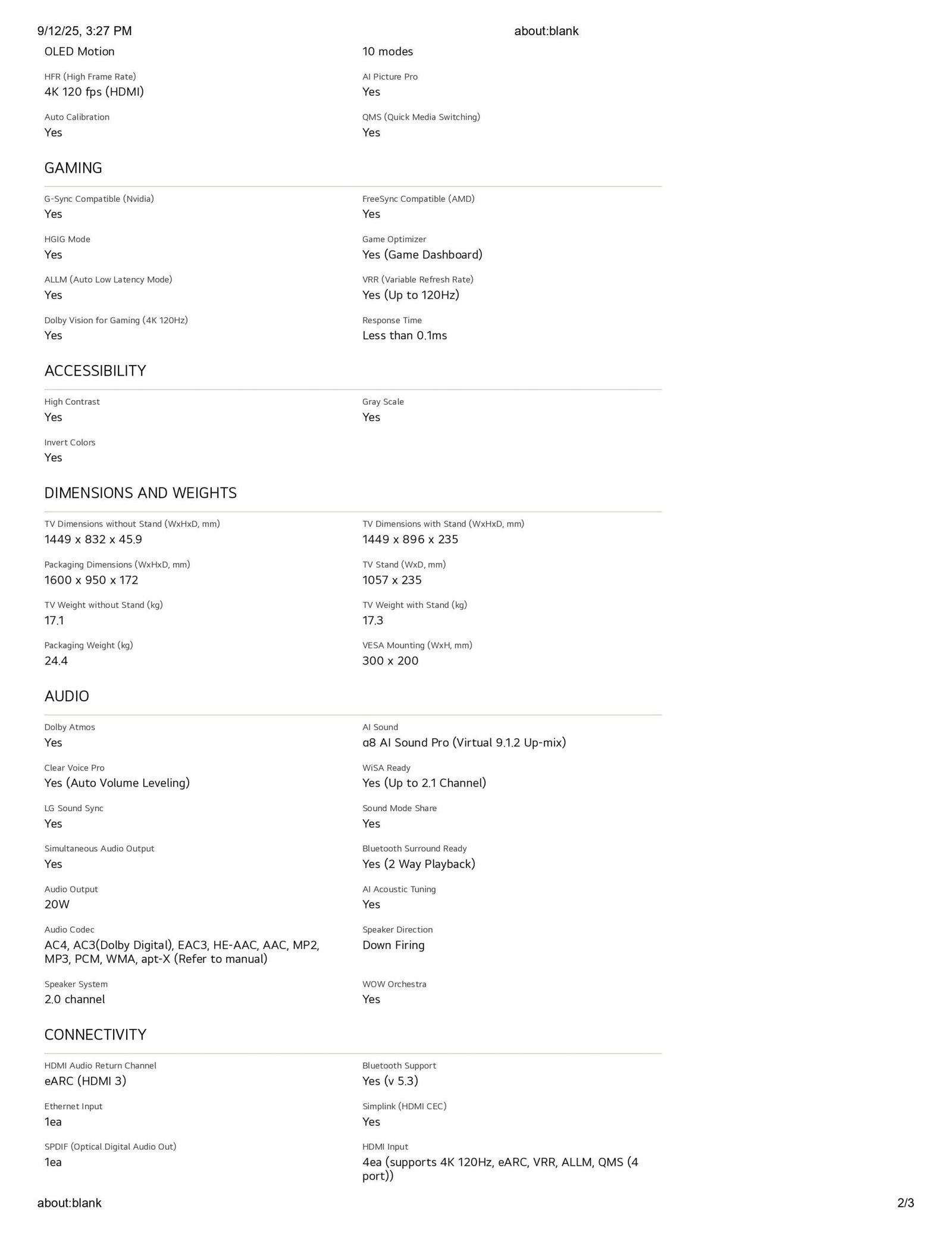LG OLED AI TV B5 120Hz Dolby Vision & HDR10 4K UHD