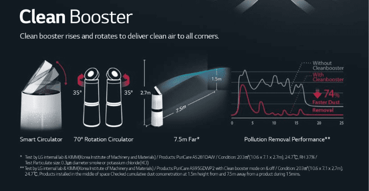 The innovative Clean Booster feature in LG PuriCare creates a circulating air stream to deliver powerful, clean and cool air: