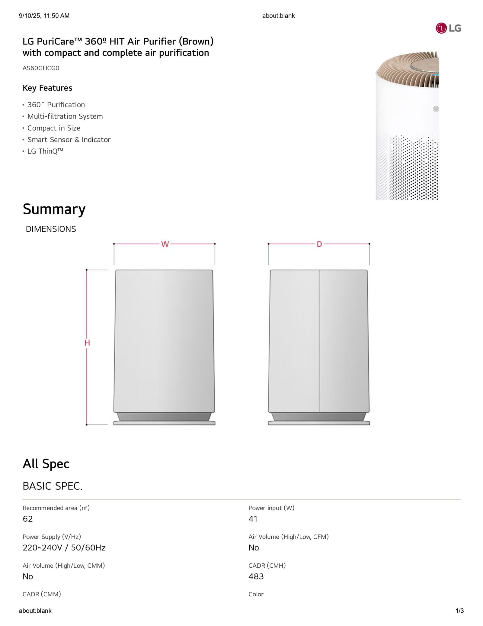 Low Energy Consumption: Yes (BLDC Motor, 41W)