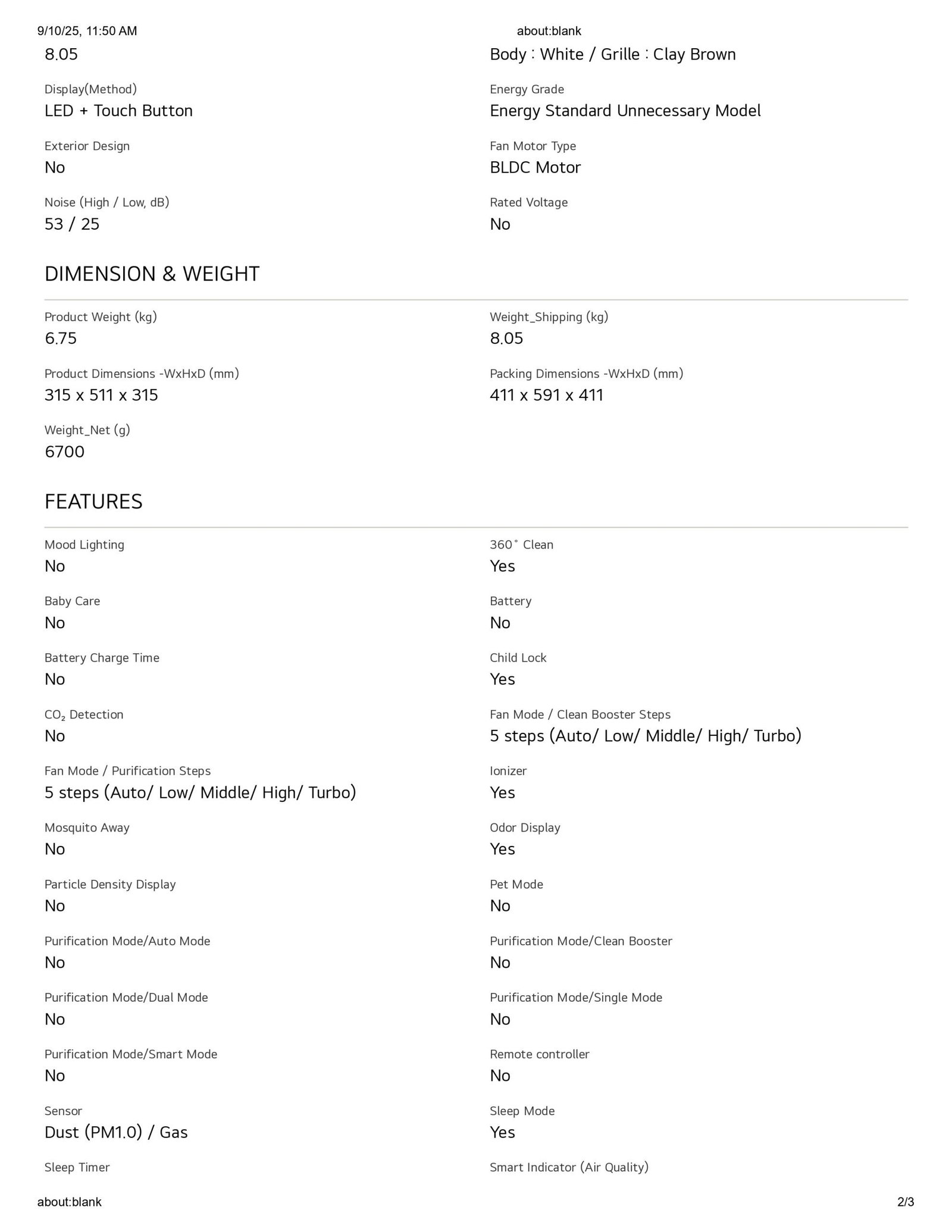 Smart Sensor & Indicator: Yes (Dust PM1.0 + Gas Sensor, 4-step Air Quality Indicator: Red/Orange/Yellow/Green, Odor Display)