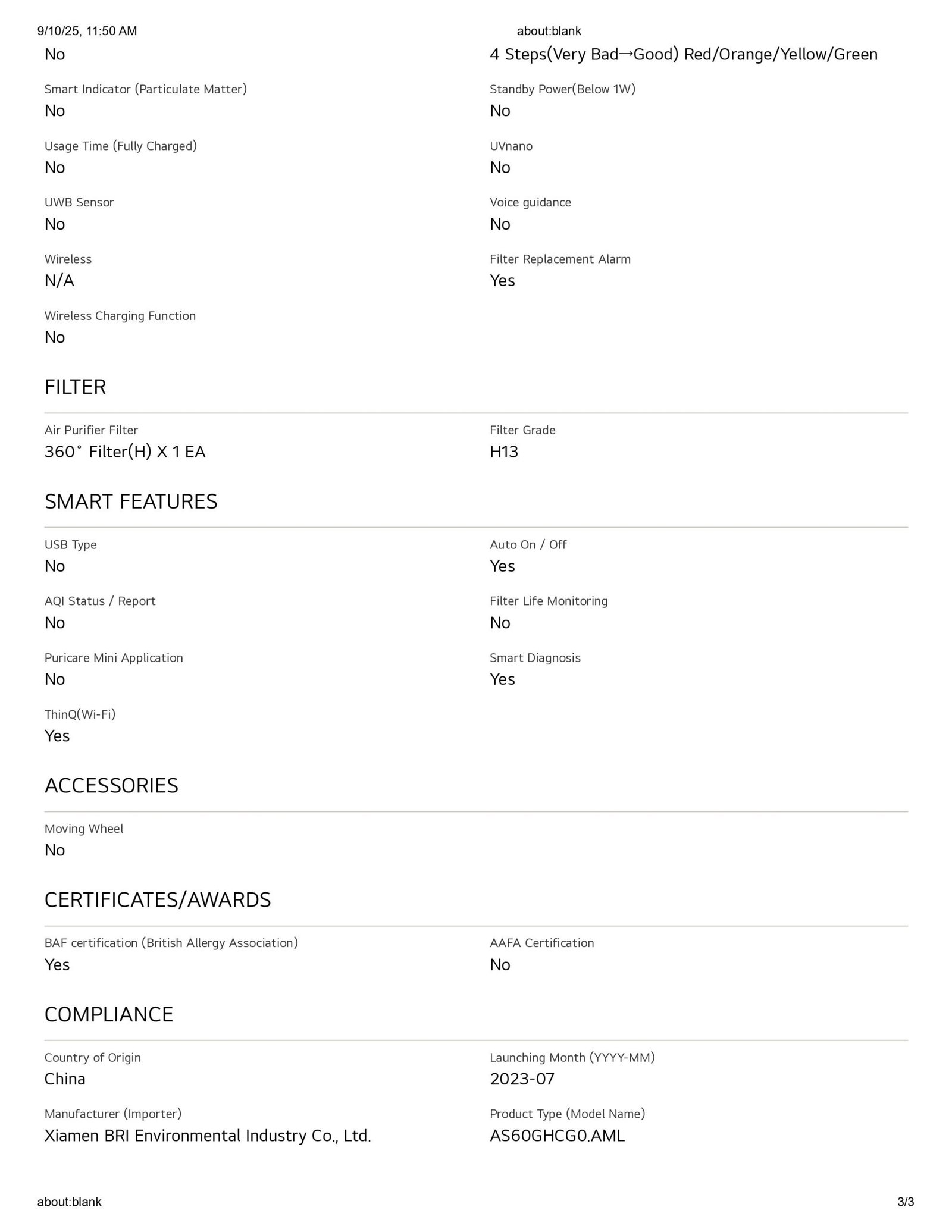 Filter: 360˚ H13 Filter (Replacement Alarm Included)