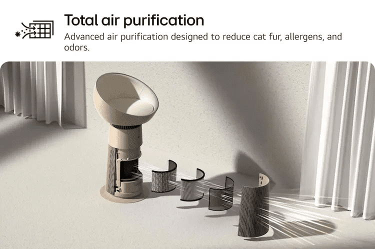 Powerful air purification, quiet operation when your cat is using it for comfort.