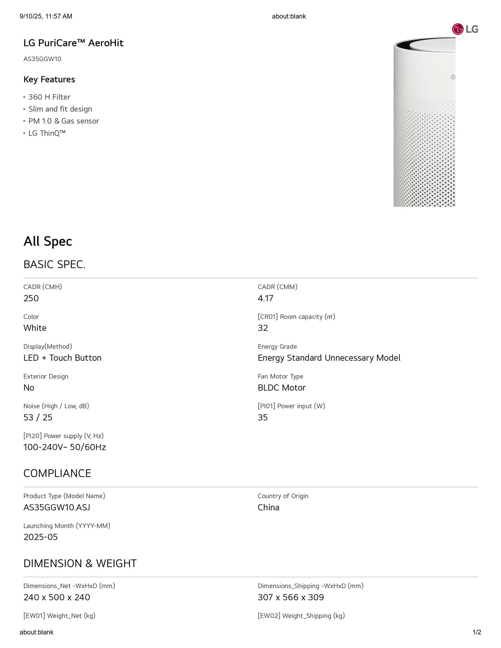 - Model: AS35GGW10.APH