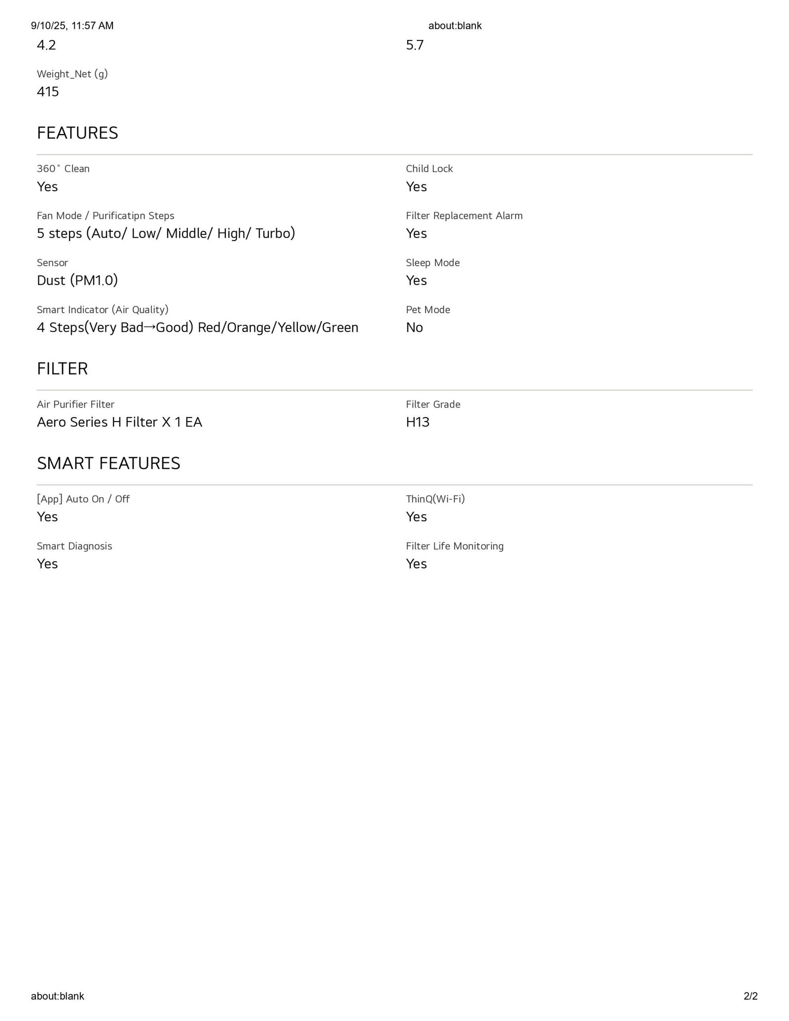 Smart Sensor & Indicator: Yes (PM1.0 Dust Sensor + 4-step Air Quality Indicator: Red/Orange/Yellow/Green)