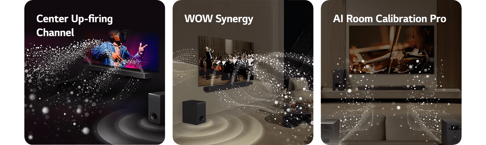 The Center Up-firing Channel makes sound feel like it’s coming from the middle of your LG TV for a lifelike sensation.