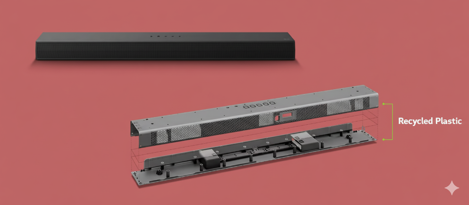 LG Soundbars use recycled plastic use on top and bottom parts. Proof we’re taking a more eco-minded approach to soundbar production.