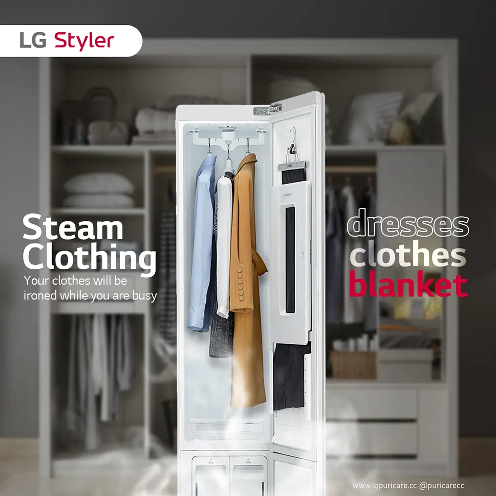 Look sharp and feel refreshed with the LG Styler. Our revolutionary garment care system uses TrueSteam™ technology to sanitize, deodorize and de-wrinkle your clothes, so they’re always ready to wear. With a gentle touch that protects delicate fabrics and a built-in dehumidifier, the LG Styler keeps your wardrobe pristine, extending the life of your favorite garments. Trust each wear to be as fresh as the first.