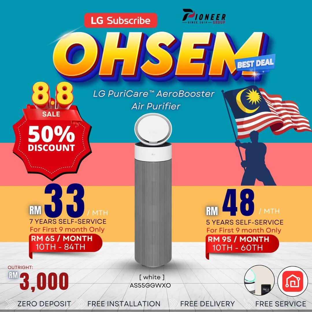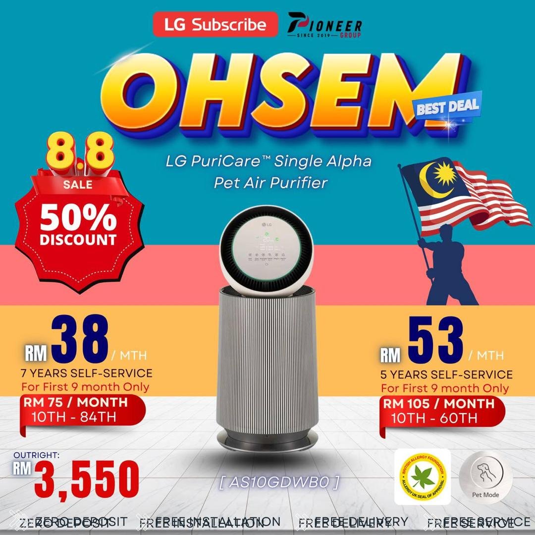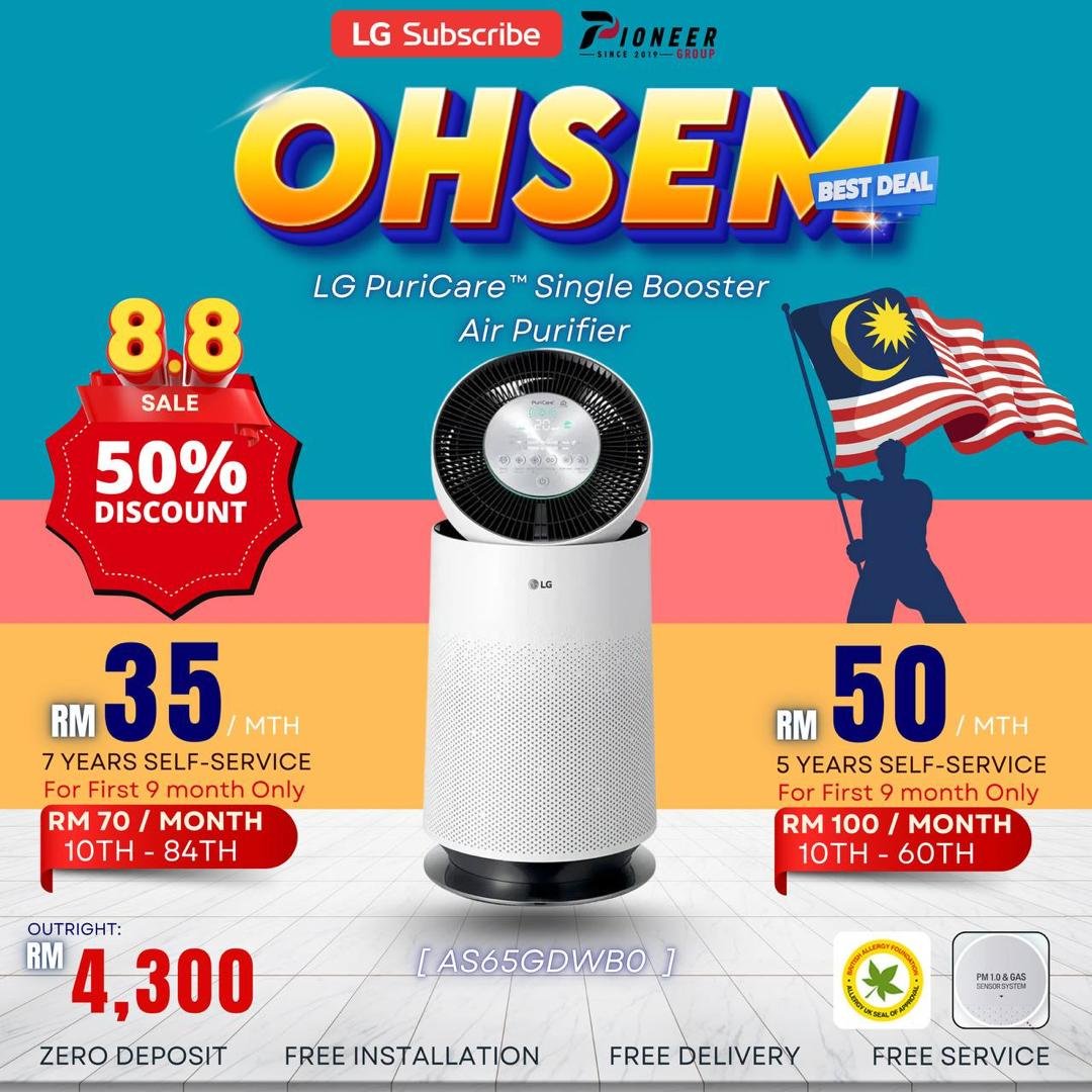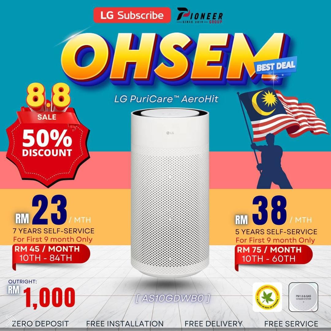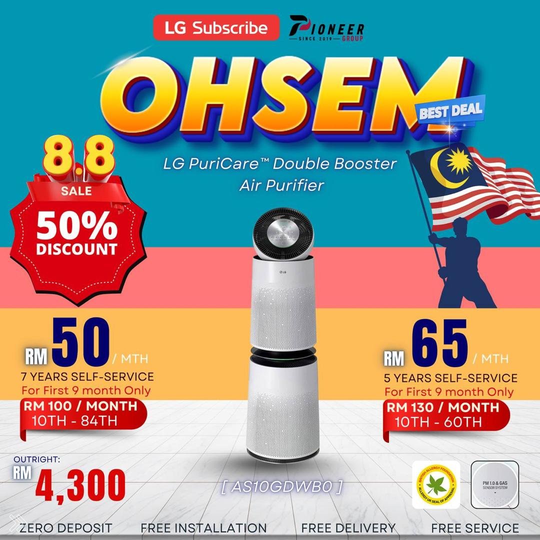 LG TRADE-IN PROGRAMEnjoy 50% discount 12 month for All Air Purifier & Water Purifiertrade-interm & conditionApplicable only for Water Purifier & Air PurifierOnly for brands such as Cuck**, Cow*y and SK Mag*c onlyTRADE-IN WATER PURIFIER TRADE-IN AIR PURIFIER